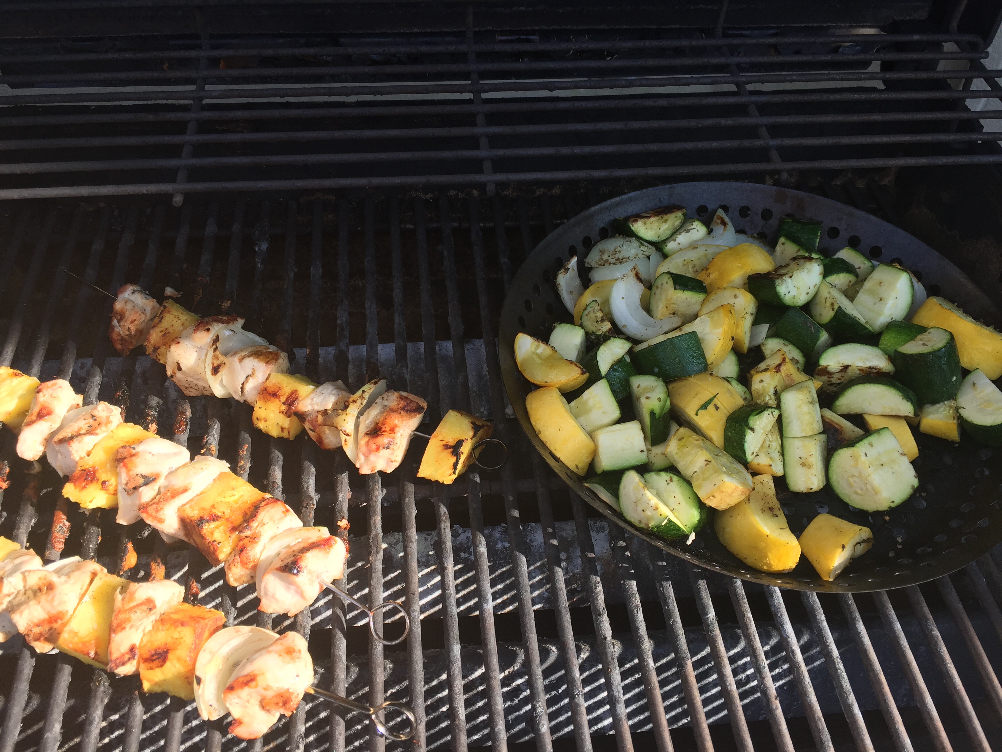 Have you ever had tried grilled pineapple? If not, try this recipe!! It is so good! Tonight we grilled chicken and pineapple kebabs with grilled veggies and a baked sweet potato sprinkled with cinnamon for dinner. The chicken kebabs would also be amazing with the coconut cauliflower rice I posted a few days ago. Click here for that recipe.